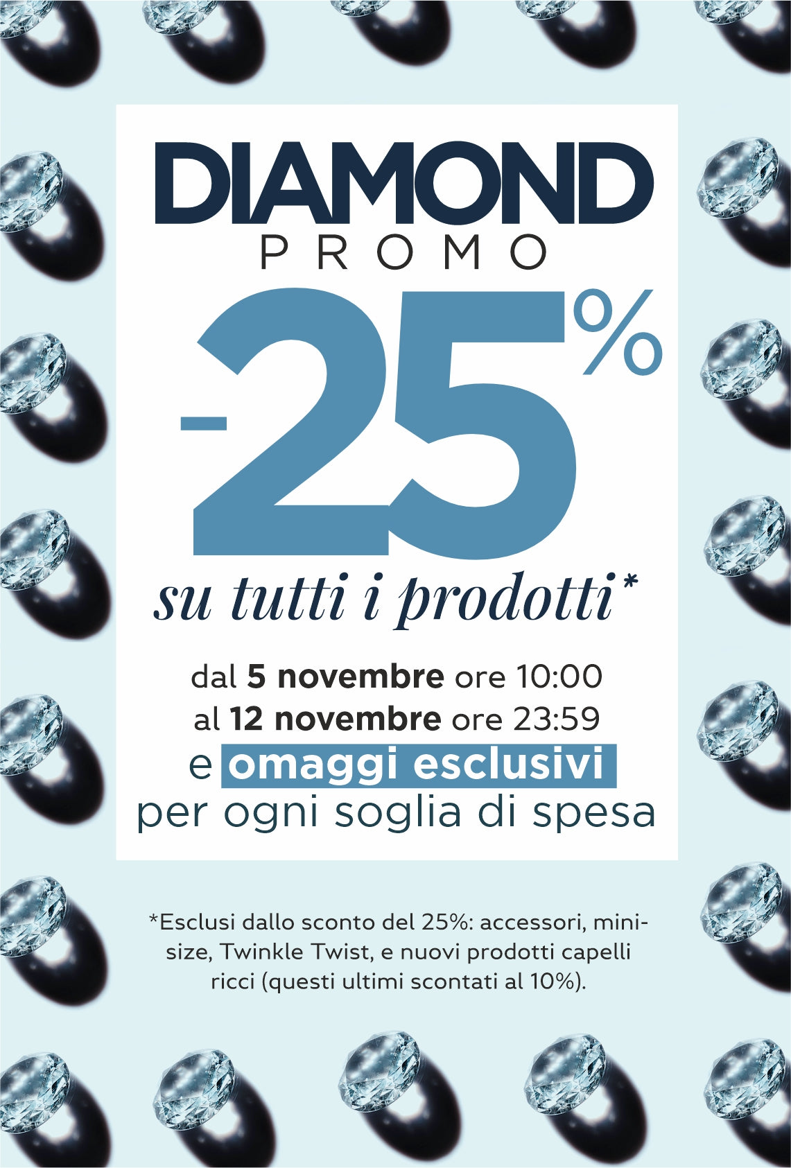 *Excluded from the 25% discount: accessories, mini-size, Twinkle Twist, and new curly hair products (the latter discounted at 10%)